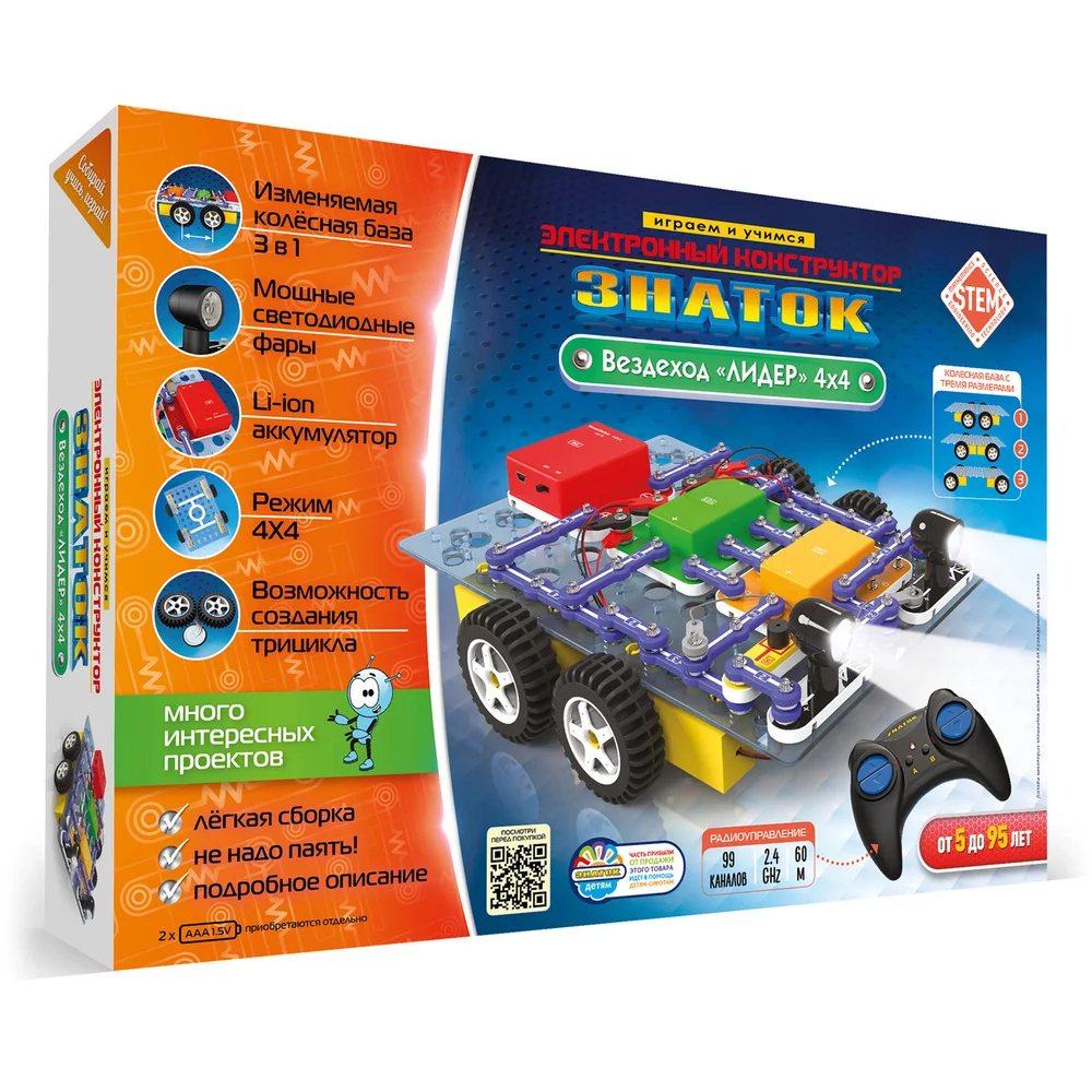 Электронный конструктор "Радиоуправляемый вездеход Лидер 4х4" является логическим развитием предыдущих электронных конструкторов ЗНАТОК™.
