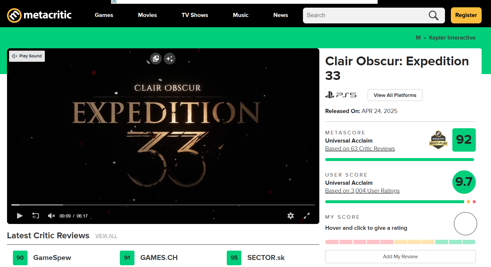 Рейтинги игры также бьют все рекорды: оценка на Metacritic оказалась одной из самых высоких на агрегаторе – 9.7 из 10 баллов! Таким образом, она опередила даже таких легенд, как The Witcher 3: Wild Hunt, Baldur’s Gate 3, Elden Ring и пр. На Opencritic игру рекомендуют 97% пользователей.