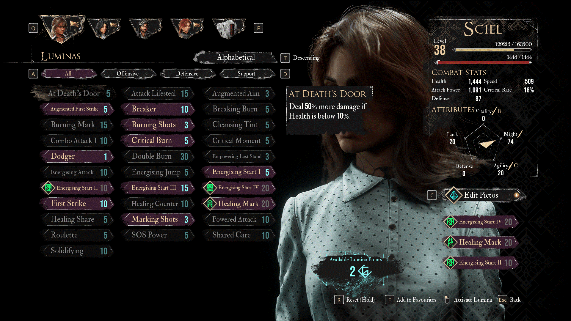 Билды можно настраивать глубоко и тонко за счёт системы пиктосов, пассивных умений и эффектов оружия. При правильной сборке персонажи способны наносить огромный урон, но и враги в игре не прощают ошибок.