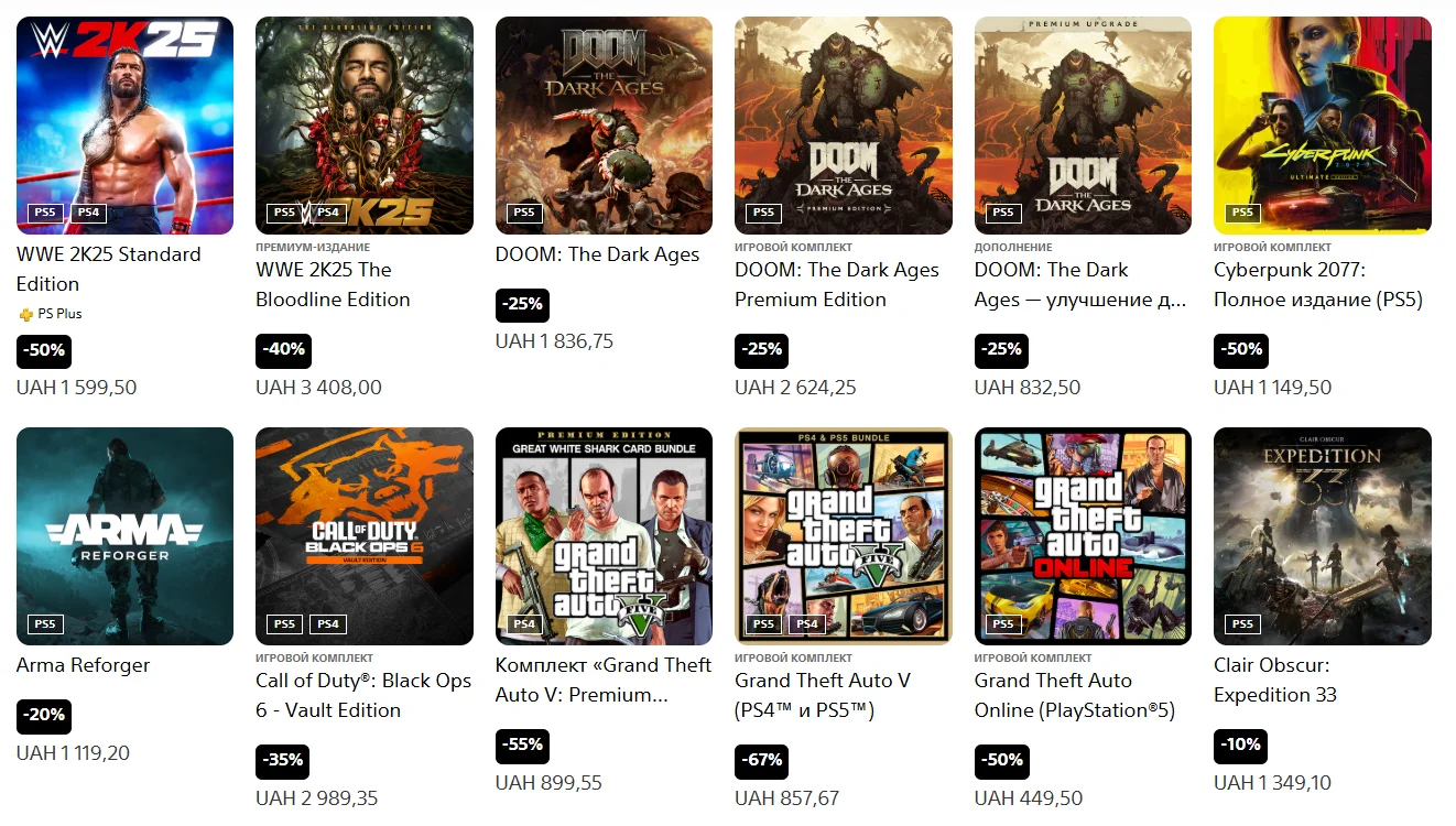 Успейте купить игры в PlayStation Store со скидками до 75%! Cyberpunk 2077 (-50%), Doom: The Dark Ages (-25%), Call of Duty: Black Ops 6 (-35%), Avatar: Frontiers of Pandora (-70%), Hogwarts Legacy (-75%) и множество других хитов участвуют в распродаже!